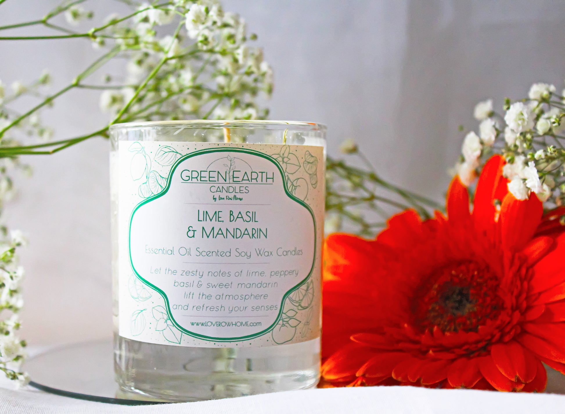 Lime, Basil & Mandarin Essential Oil Scented Soy Wax Candle 165g